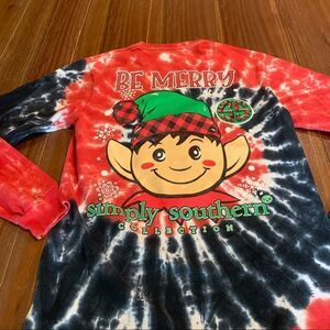 Simply Southern Tie Dye Holiday Be Merry T shirt S. Long sleeve T-shirt preppy. Approximate measurements armpit to armpit 17 inches length 25 1/2 inches great preowned condition.