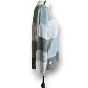 Simply Southern lightweight open knit sweater with distressed hems - Shades of blue and gray