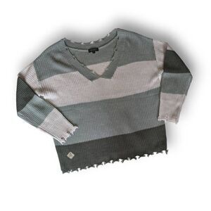 Simply Southern Womens Sweater Knitted V Neckline Distress Medium