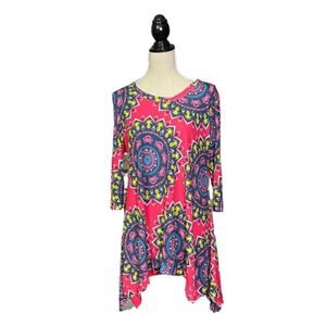Simply Southern Asymmetrical Tunic Crab /Mehndi Print Sz S