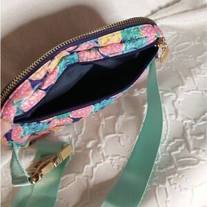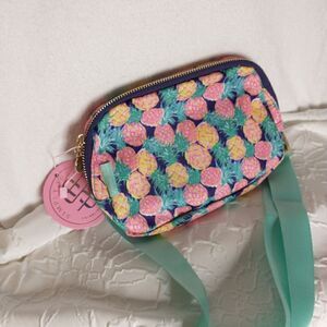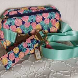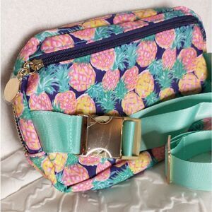 Both in the pineapple pattern. Belt Bag has gold toned hardware zipper closure and an adjustable single strap. Approximately 8"W x 5.5"H x 2"D. Key fob (key chain) is approximately 6.25" long and 1" wide. No rips, tears or stains. Smoke free/Dog friendly home.