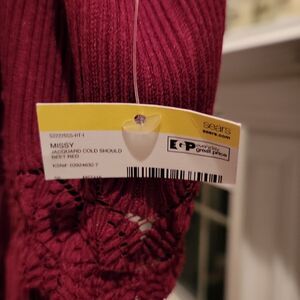 NWT. Beautiful beet red jacquard cold shoulder dress by SEARS. The shell and lining are 100% Polyester.