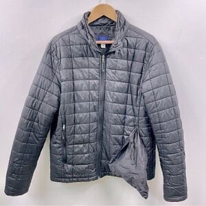 Light puffer jacket, Medium, unisex, two outside zipper pockets front zipper closure.