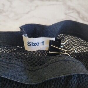 1 pair preworn fishnet stocking. Black, size 1. No runs, snags, holes.