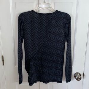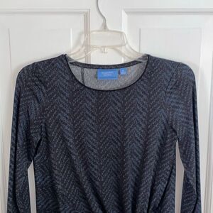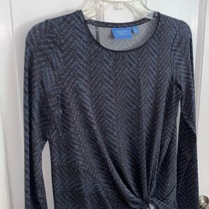 Simply Vera Vera Wang long sleeve stretchy blouse with printed blue and black design and knotted at waist. In great condition!