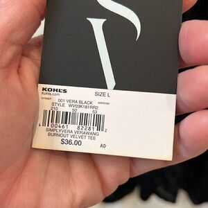 Simply Vera Black Vera Wang Leopard Print Velvet Burnout Tee size Large- NWT