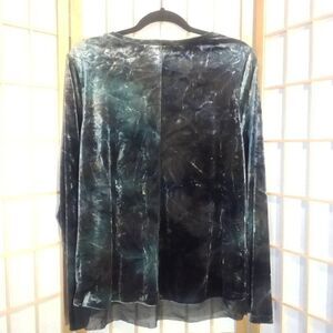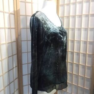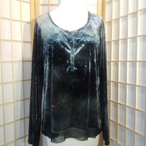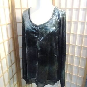 Beautiful, elegant, and classic crushed velvet blouse from Simply Vera Vera Wang. Size large. Chiffon trim. 92% polyester, 8% spandex. Hand wash. Made in Vietnam. Excellent condition. Nonsmoking home.