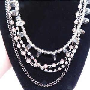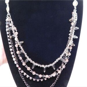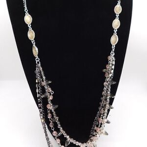 Simply Vera Wang 4 strand necklace. Very feminine, with interesting strands with stones and different shapes. 3 stones on each side of the necklace drop. Very long, 34 inches when unclasped and stretched to full length.