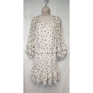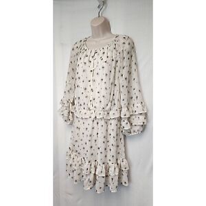 Simply Vera Wang Multicolor Cream/Black Chiffon Ruffle Dress Size Large