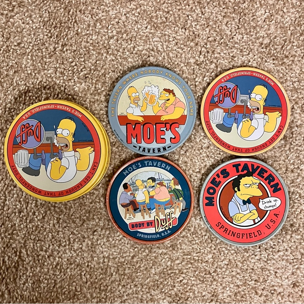Simpsons Coasters. Metal with cork bottom. 4 coasters
