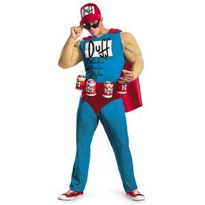 Get ready to bring the party with the Duffman's muscle costume. Complete with the iconic red cap and beer belt, it's a hilarious way to show your love for The Simpsons.