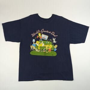 Simpsons "World's Greatest Dad" Y2K Vintage 2003 Fox Funny Navy Shirt Size XL