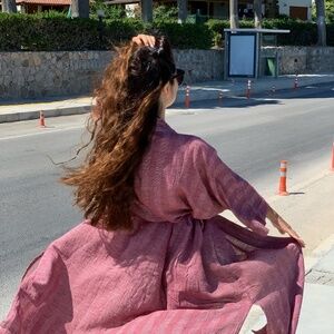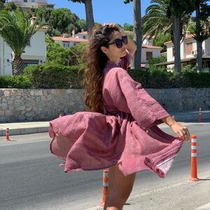 This piece is great to put on when you get up in the morning as a robe, or right after shower, or when you need that one more layer on a chilly summer night while you are sipping your favorite drink on the porch... It is definitely a showpiece for the beach as a cover up over your swimsuit or a top layer with a tank-top and jeans. Possibilities are endless and it is waiting for your imagination.