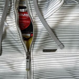 Sims Snowboard Hoodie Men’s L White Green Stripe Full Zip Sweatshirt Jacket Y2K