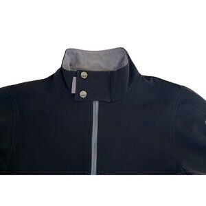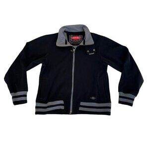Sims Women's Sz L Black Full Zip Varsity Jacket Gray Striped Ribbed Cuffs & Hem