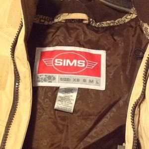 Like new heavy sims ski jacket has removable hood air vent zippers on sides tones of pockets