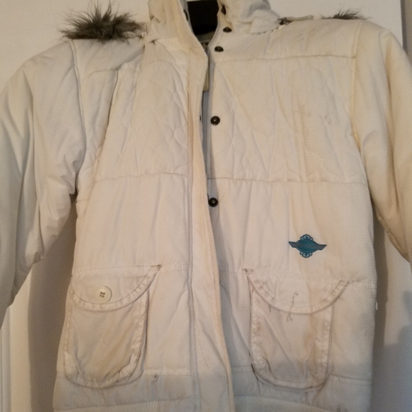 As you can see by the pictures it is missing a button and could use a good cleaning. Adorable jacket and super warm!!!!