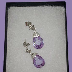 Simulated Amethyst Silver Dangle/Drop Earrings