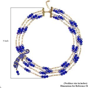 Simulated Blue Pearl and Multi Gemstone Multi Row Paper Clip Chain Necklace with Leopard Charm 20-22 Inches in Goldtone