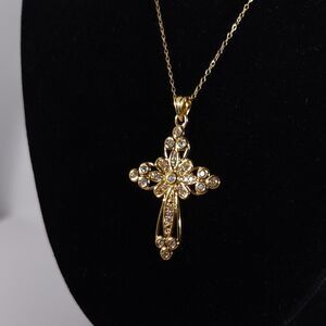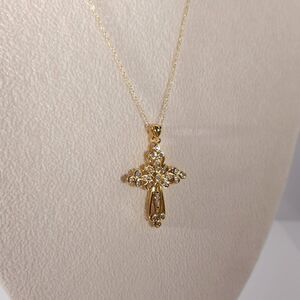 Simulated Diamonds Gold Plated Cross Pendant and Italian Chain Necklace