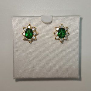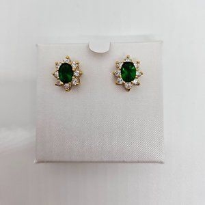 Add a touch of elegance to your style with these stunning oval stud earrings. The exquisite green simulated emerald stone adds a pop of color and sophistication to your look. The classic design and style make these earrings a perfect addition to any jewelry collection. The beautiful oval shape and simulated stone creation make them a versatile accessory that can be worn to any occasion. These earrings are a must-have for anyone who loves fashion jewelry and wants to make a statement.