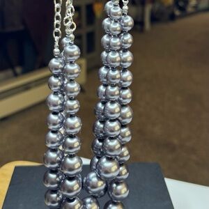 Simulated Grey Pearl Triple Row Necklace (20-22 Inches) in Silvertone