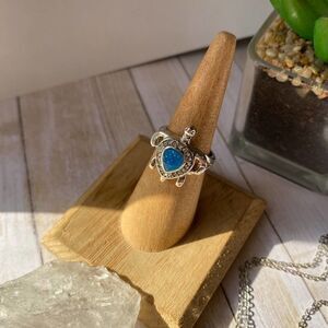 Simulated Opal Turtle Jewelry Set Ring & Necklace Ring Size 7