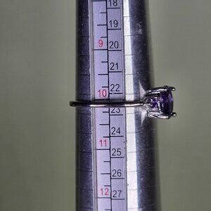 Nestled like a secret treasure, this simulated amethyst ring captures the essence of twilight skies. The silvery band cradles its purple stones with elegance, offering a timeless charm for those who adore subtle sophistication.
