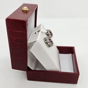 Simulated Ruby Red/White Oval Stud Earrings