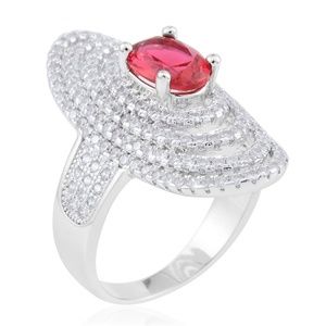 Simulated Ruby, Simulated Diamond Silvertone Elongated Ring (Size 8.5) TGW 3.92 cts. Bedazzle and beguile at the next cocktail party with this snazzy ring. Jeweled with simulated red diamond and generously dusted with simulated diamond, the piece is furnished in silvertone. B3/2/11