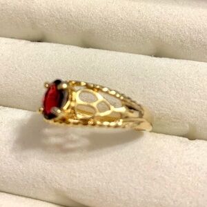 Beautiful simulated gem stone with gold plated band. Brand new never worn - Has just sat in jewelry box.