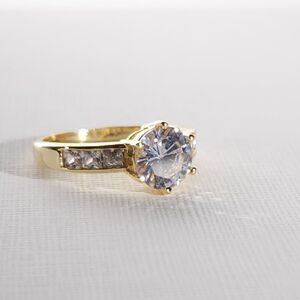 Simulated White Diamond Ring in a Goldtone Ring Size 8