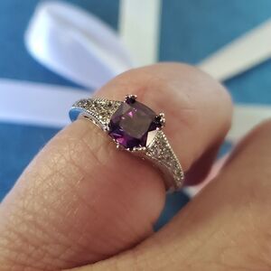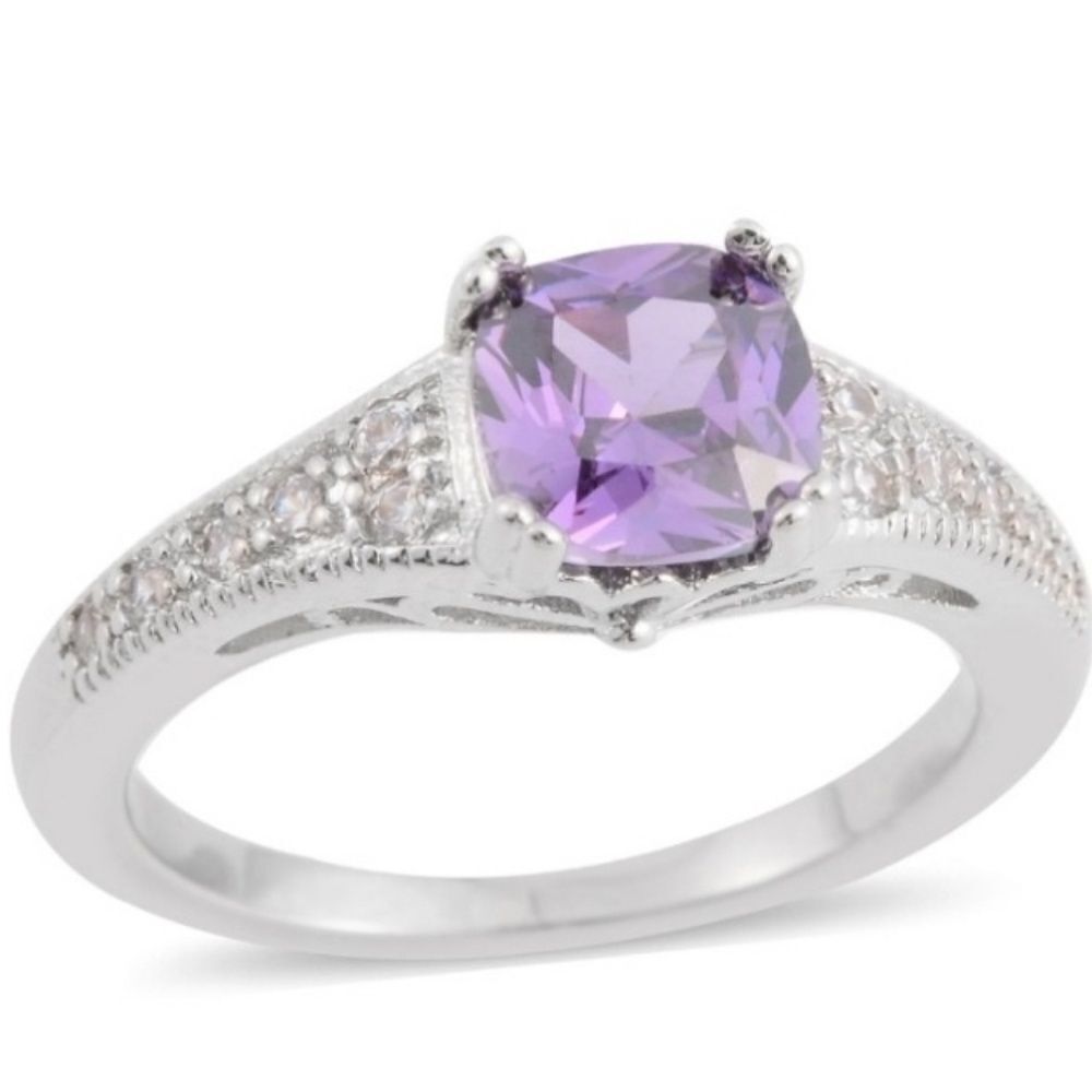 Simulated Amethyst, Simulated Diamond Silvertone ring Size 4.5. TGW 0.90 cts