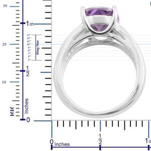 Simulated Amethyst, Simulated Diamond Silvertone Split Ring. Size 5. TGW 1.21 cts.