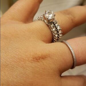 Silver Engagement Bridal Wedding Ring Set; Valentine’s Day