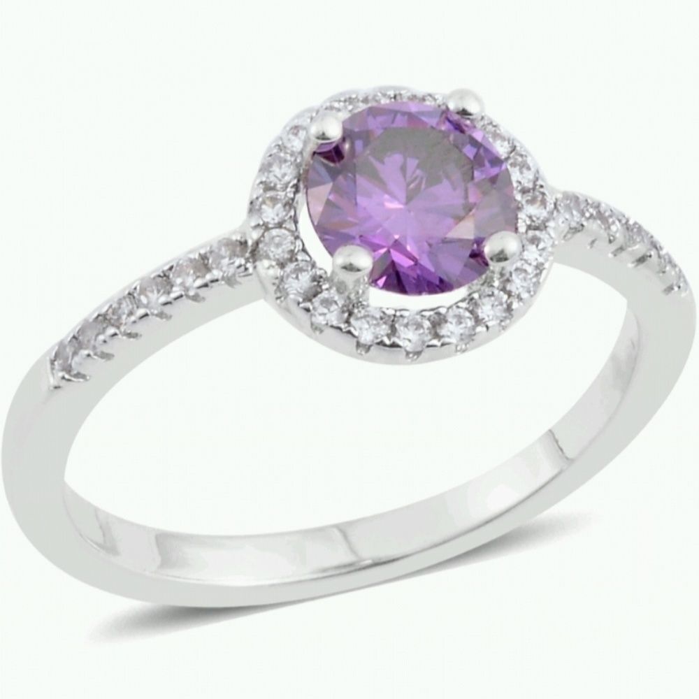 Simulated amethyst, simulated white diamond silvertone ring. Size 7.5. TGW .91cts. Never worn. NWT