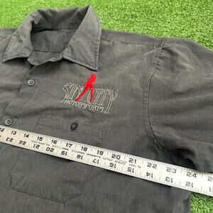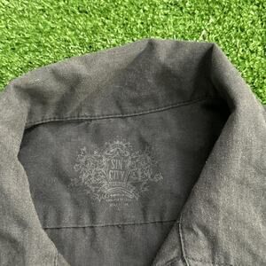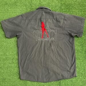 ☆ Features: Charcoal gray short-sleeve button-up shirt with dual front pockets. Detailed "Sin City Motorsports" embroidered logos on the chest and back featuring a red silhouette design. A durable and stylish piece for motorsports enthusiasts.