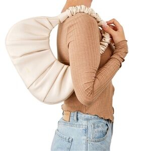 Sinbono Vegan Faux Lambskin Leather Ava Ivory Scrunch Handle Hobo Bag One Size
