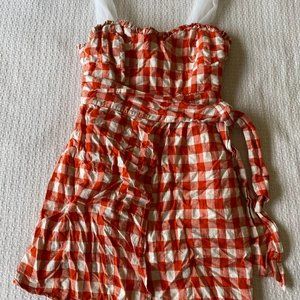 Since Then Daffodld Orange and white Plaid Mini Dress