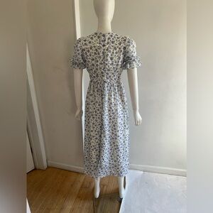 Since Then White Blue Floral Print Long Puff Sleeve A-line Maxi Dress M V-neck