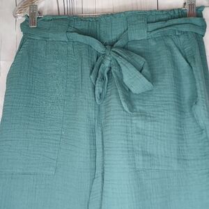 Sincerely Jules 100% Cotton Teal Wide-Leg Pants