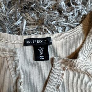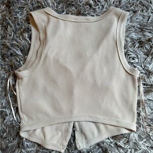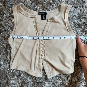 Stylish beige tank top with button-front. Perfect for layering or wearing alone.