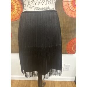 Sincerely Jules Black MIDI Fringe Skirt Free Spirted Glam Effortless Cool Sz M