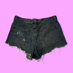 distressed denim, vintage shorts, high-waisted, cut-off, bleached denim, grunge, casual, retro, summer style, faded blue