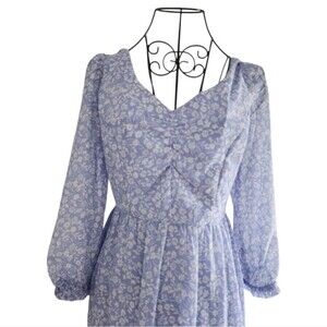 Sincerely Jules Blue Floral Smocked Tiered Maxi Dress XS Cottagecore Boho Puffy