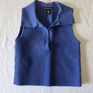 Chic blue ribbed top with a collared design. Ideal for everyday style.