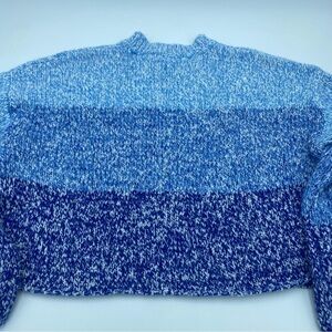 Sincerely Jules Blue Striped Cropped Chunky Knit Sweater, Large