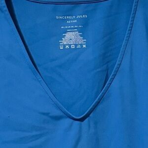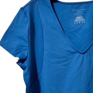 Sincerely Jules Blue V-Neck Active Short Sleeve Shirt Womens Size Large NWOT