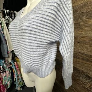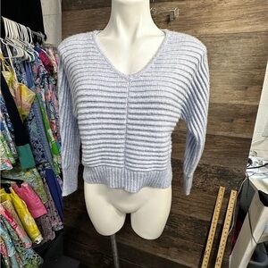 Sincerely Jules Blue V-Neck Sweater with Ribbed Knit