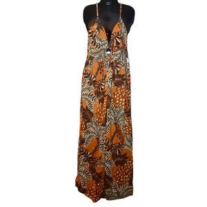 Stylish jumpsuit with a tropical print. Features a flattering fit. Perfect for beach outings.